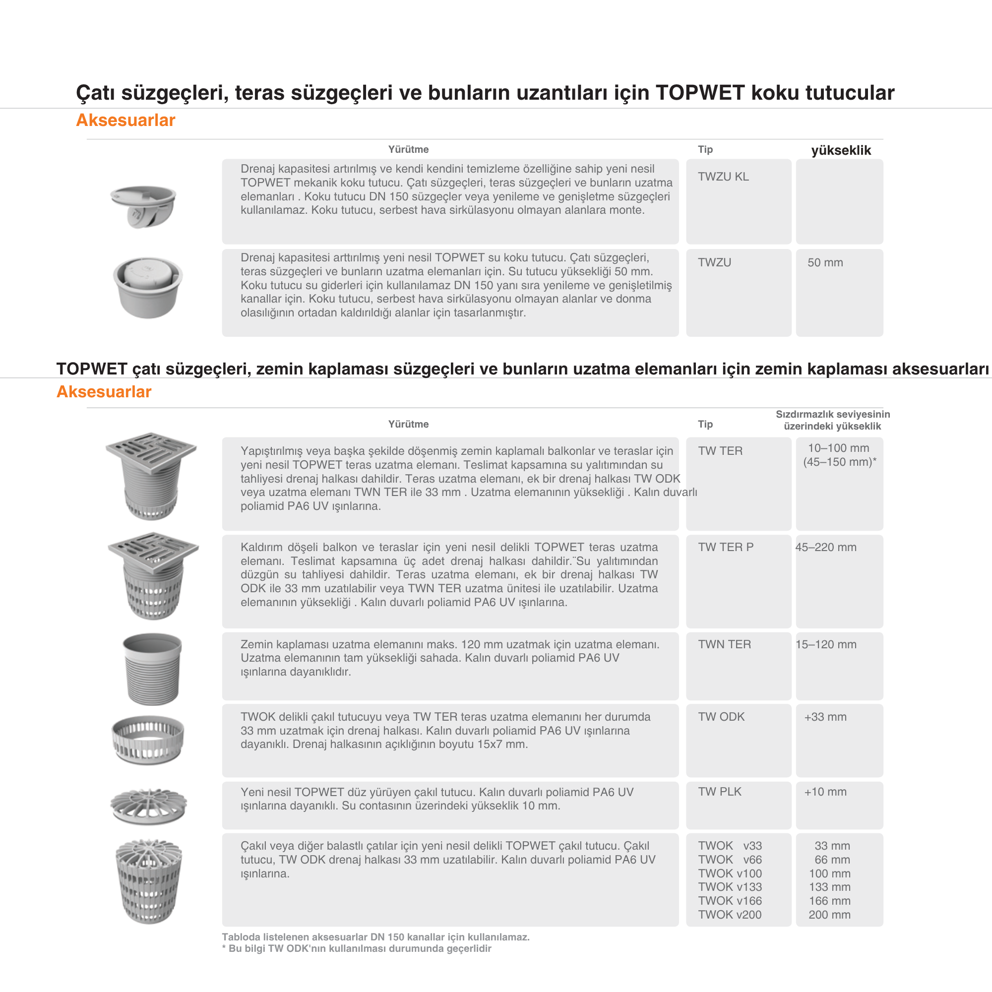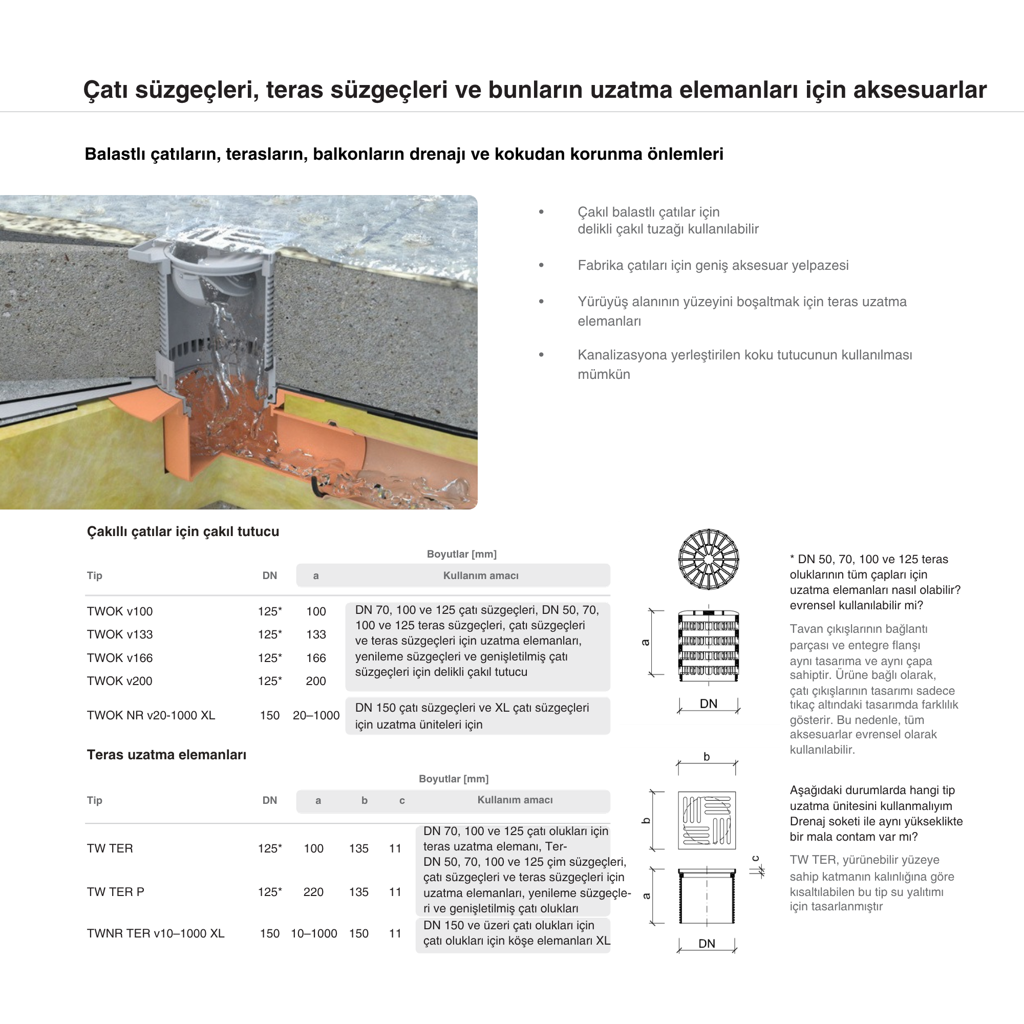 TWOK delikli çakıl tutucuyu veya TW TER teras uzatma elemanını her durumda 33 mm uzatmak için drenaj halkası. Kalın duvarlı poliamid PA6 UV ışınlarına dayanıklı. Drenaj halkasının açıklığının boyutu 15x7 mm.